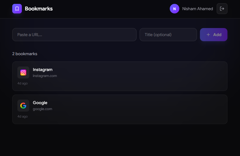 A modern, real-time bookmark manager built with Next.js, React, and Supabase. Save, organize, and manage your bookmarks from anywhere with instant sync across devices.